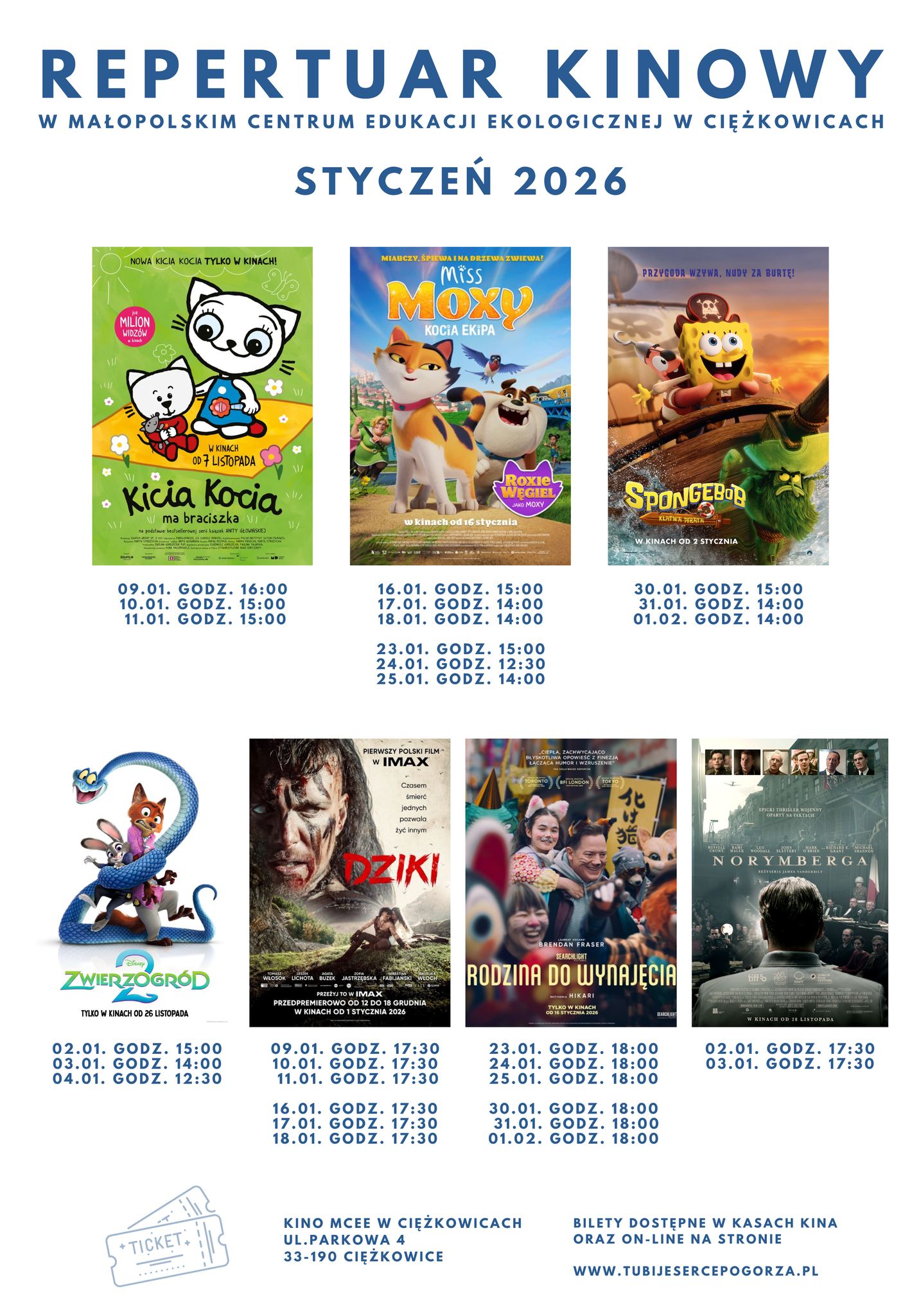 SpongeBob – Klątwa Pirata2026-01-02 Plakat kinowy – styczeń Plakat kinowy - styczeń Zapraszamy do zapoznania się z repertuarem kinowym na styczeń. Kup bilet na seans Udostępnij Powiązane artykuły2026-01-02SpongeBob – Klątwa PirataCzytaj więcej2026-01-02Rodzina do wynajęciaCzytaj więcej2026-01-02Miss Moxy. Kocia ekipaCzytaj więcej