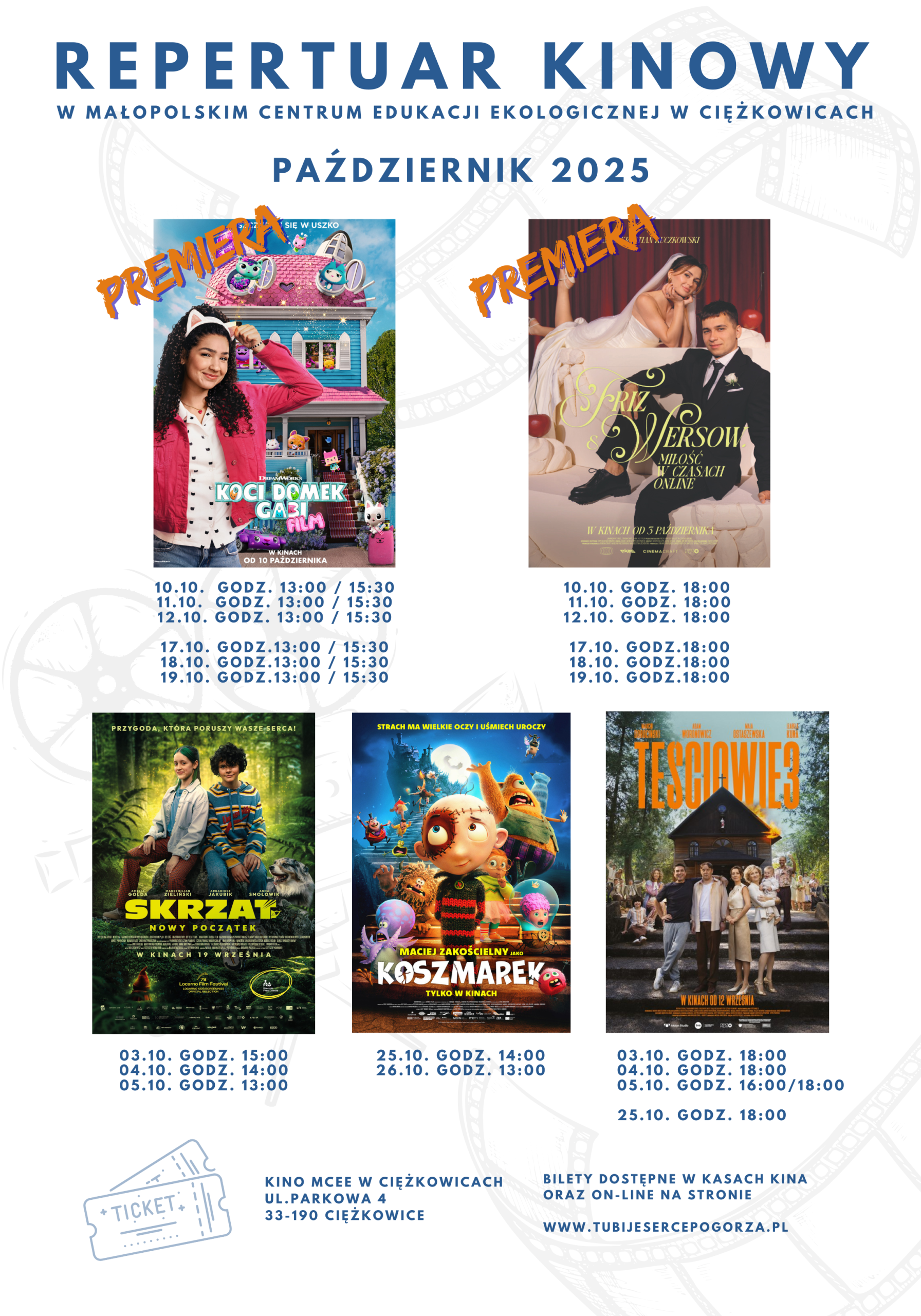Koszmarek2025-10-02Filharmonia w Regionie2025-10-04 Repertuar październik Repertuar październikZapraszamy do zapoznania się z październikowym repertuarem. Kup bilet na seans Udostępnij Powiązane artykuły2025-10-04Filharmonia w RegionieCzytaj więcej2025-10-02KoszmarekCzytaj więcej2025-10-02Koci domek GabiCzytaj więcej